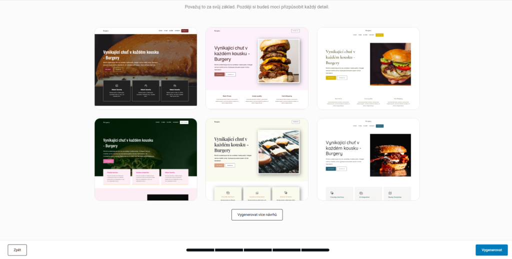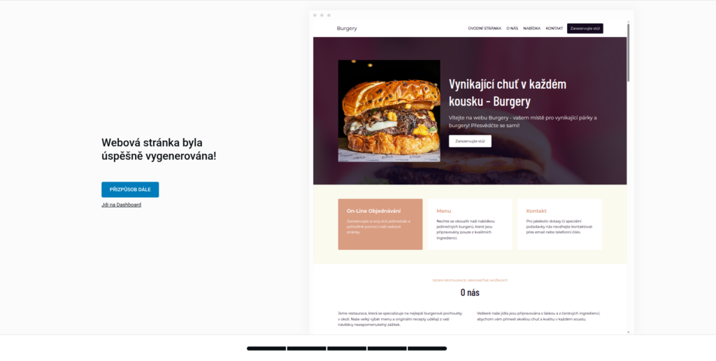 Podle tvých odpovědí AI připraví podobu webu, jeho obsah i rozvržení. Za pár sekund máš hotový moderní web, se kterým můžeš dál pracovat.